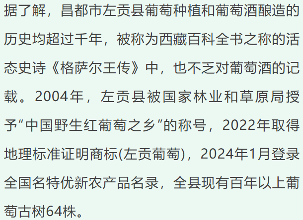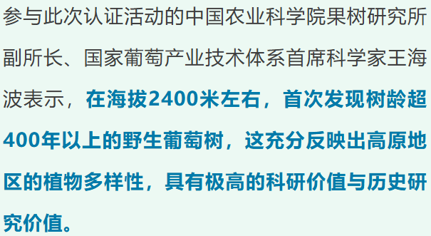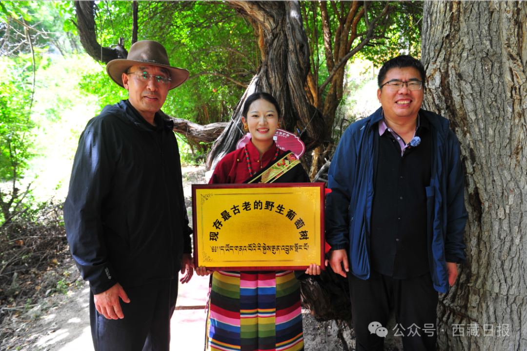 图为中国农业科学院果树研究所副所长、国家葡萄产业技术体系首席科学家王海波(右)与昌都市政协副主席泽仁罗布共同为古葡萄树授牌。记者 温凯 平措郎加