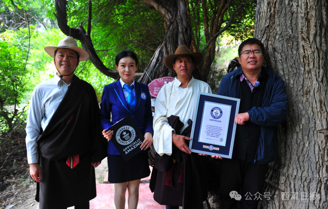 图为中国农业科学院果树研究所副所长、国家葡萄产业技术体系首席科学家王海波(右)与左贡县主要领导接受吉尼斯世界纪录认证证书。记者 温凯 平措郎加