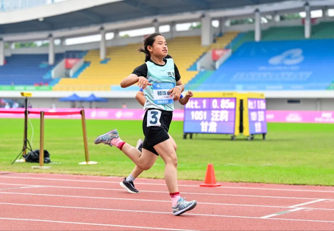 田径赛场上亮点纷呈,顿珠卓玛在女子50米、立定跳远两个项目中斩获两枚银牌;