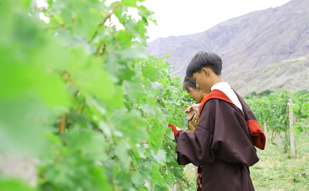 更重要的是,中林卡乡的万亩葡萄基地为村民提供了大量就业岗位。“我们村有38名长期工,每年还会雇佣大量临时工,去年仅务工补助就有200余万元。”四朗次登介绍道。在基地里,村民们从事修剪、施肥、除草、采摘、管护等工作,每人每天能拿到130元。村里164户人家,几乎家家都有成员参与务工。